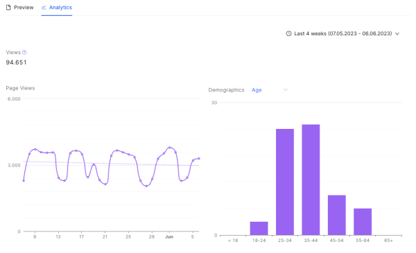Beiträge und Seiten können nun individuell ausgewertet werden. Parameter wie Views, Shares und die demografische Verteilung der Besucher können auf Basis eines bestimmten Zeitraums analysiert werden. Dies ermöglicht es, die Leistung bestimmter Inhalte im Auge zu behalten.