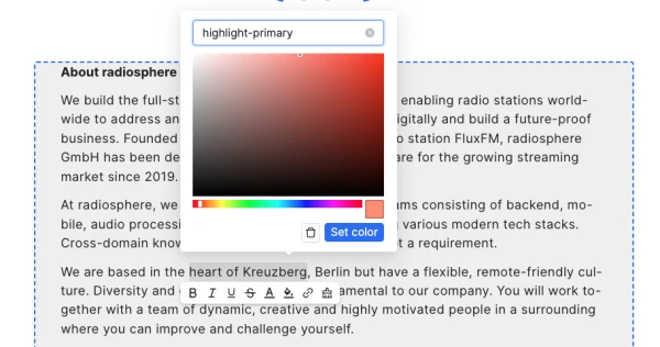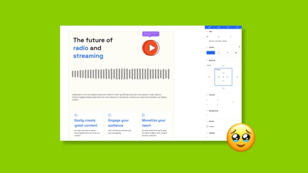 Das Look and Feel der Sidebar für Design-Einstellungen im radiosphere Studio Editor wurde komplett überarbeitet und verbessert. Der Bereich bietet nun eine übersichtlichere und schnellere Handhabung und erscheint in einem moderneren Design. Dadruch wird Nutzer:innen das Layouten von Inhalten erleichtert.